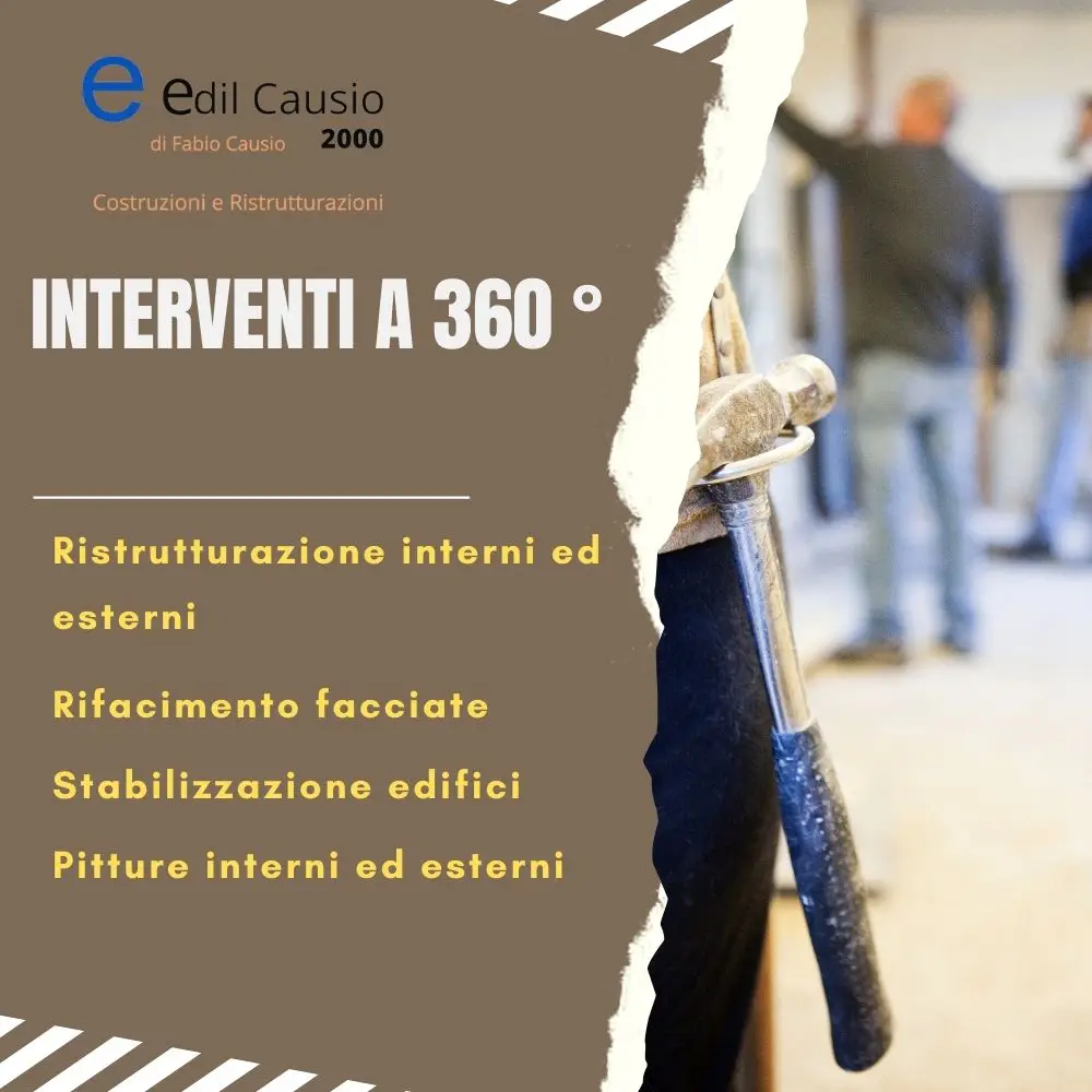 La ditta EDIL CAUSIO risolve ogni vostro problema edilizio con serietà e garanzia su ogni lavoro eseguito. Costituita nel 2000 da un giovane artigiano operante da anni nel settore dell’edilizia. Il Signor Causio Fabio persona dinamica e con un profondo senso degli affari, capì in breve la necessità di mettersi in gioco sul mercato aprendo una ditta in proprio.