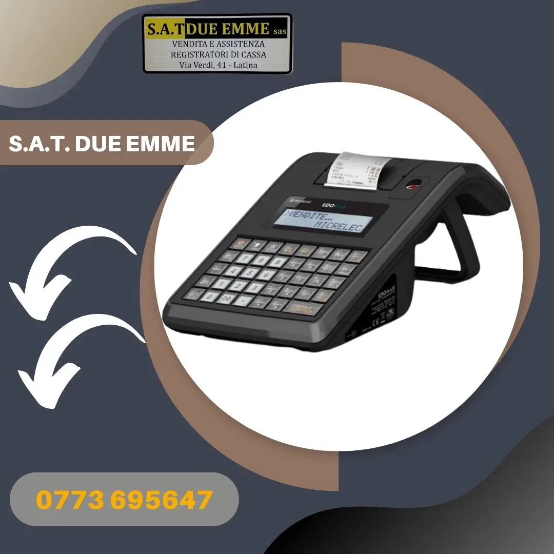 S.A.T. DUE EMME è il partner ideale per l'automazione del punto cassa della Vostra attività commerciale. Dal 1989, ci siamo specializzati nell'offrire servizi completi e professionali nel campo dei Registratori di Cassa Telematici, Stampanti Fiscali Telematiche, Pos System Touch Screen, Software Gestionale Applicativo, Stampanti Ricevute Termiche e Comande, Rotoli Termici Omologati, Terminali Portatili, Scanner Barcode, Rilevatori Verifica Banconote False, Elimina Code, APP ORDINI LOCALI, VIDEOSORVEGLIANZA e Conta Banconote. Il nostro obiettivo è garantire la massima efficienza al miglior prezzo sul mercato.