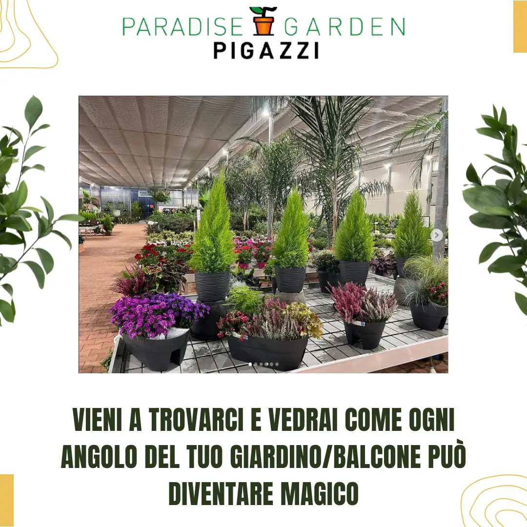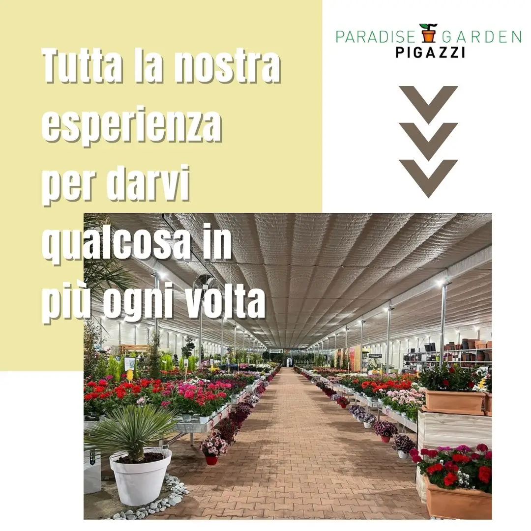 PARADISE GARDEN PIGAZZI viene aperto nel 2021, realizzato a 3 km dall’ azienda di produzione precisamente a B.go Piave frazione di Latina, si estende su un area di 32000 mq divisi in 2500 mq coperti e 1500 esterni. In tutto si contano oltre 1.000 articoli esposti tra piante da interno, piante da esterno, agrumi dalla Sicilia, piante dal Marocco, Spagna e Olanda. Accessori, vasi e terricci delle migliori marche.